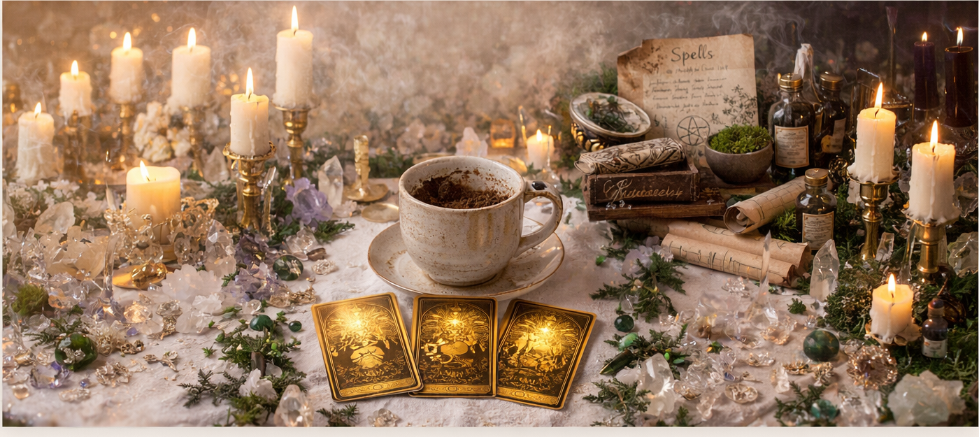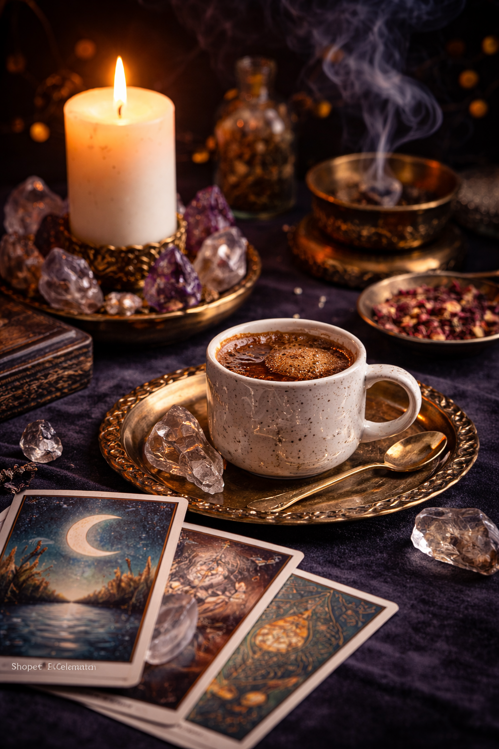 Explore candles, cups, ritual pieces, and spiritual essentials inspired by tarot, astrology, and coffee reading. Designed to bring beauty, intention, and a touch of mystery into your daily life.
